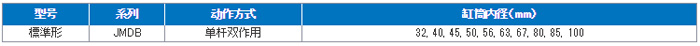 產品概述:產品概述:1、追加中間尺寸 45、56、67、85。省空氣、省空間。2、全長縮短27mm。3、質量最多減小30% (1.43kg→1.00kg)。4、省空氣 最多減少29%。通過選擇合適的尺寸可減少空氣消耗量。5、減少作業(yè)工時。采用無需調節(jié)的氣緩沖方式。6、帶磁性開關(JMDB系列:JMDB)。產品…